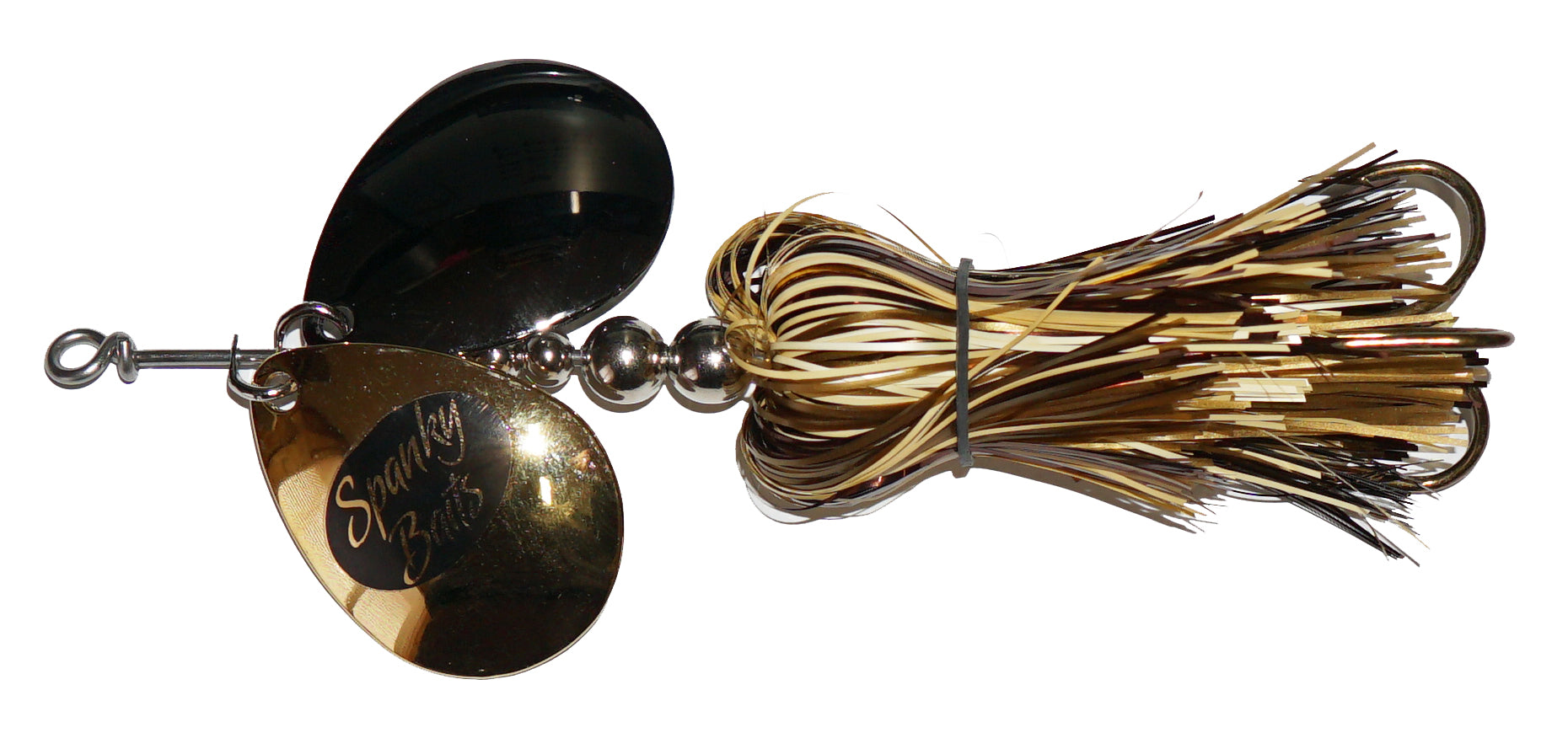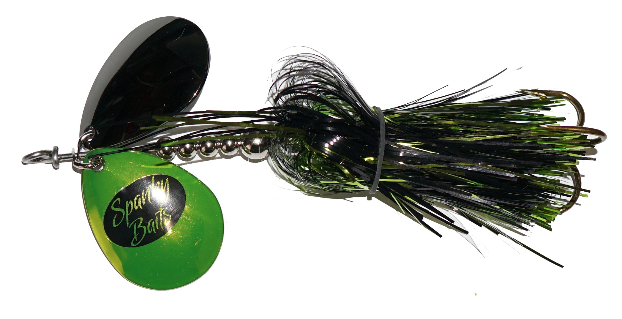 Using a shorter skirt and double magnum 7 blades this little guy buzzes through the water 1/2 skirt gives this a small profile that when coupled together with double magnum 7 blades-big, aggressive fish can’t resist. Using .072” wire, .040” thick blades and the toughest of components, this bait is the toughest you will throw. All this lure does is catch monster fish-Muskie, Pike, Walleye & Bass!