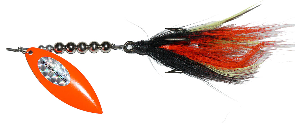 Much like the Pike Harasser here’s one with a heavy willow blade for added flash. Sometimes good things come in small packages. It’s tied on a 5/0 hook and is built brutally tough to take lots of abuse. Don’t let the name fool you, muskies love it too.