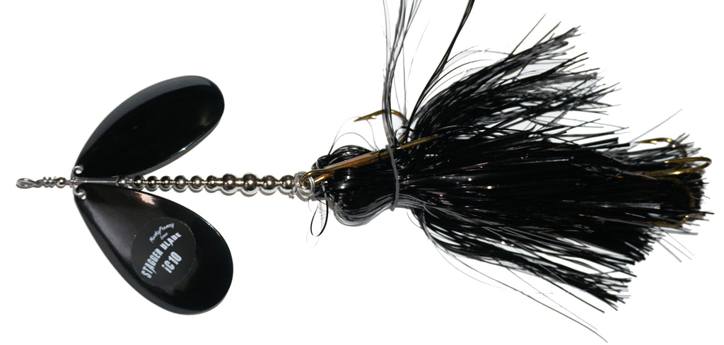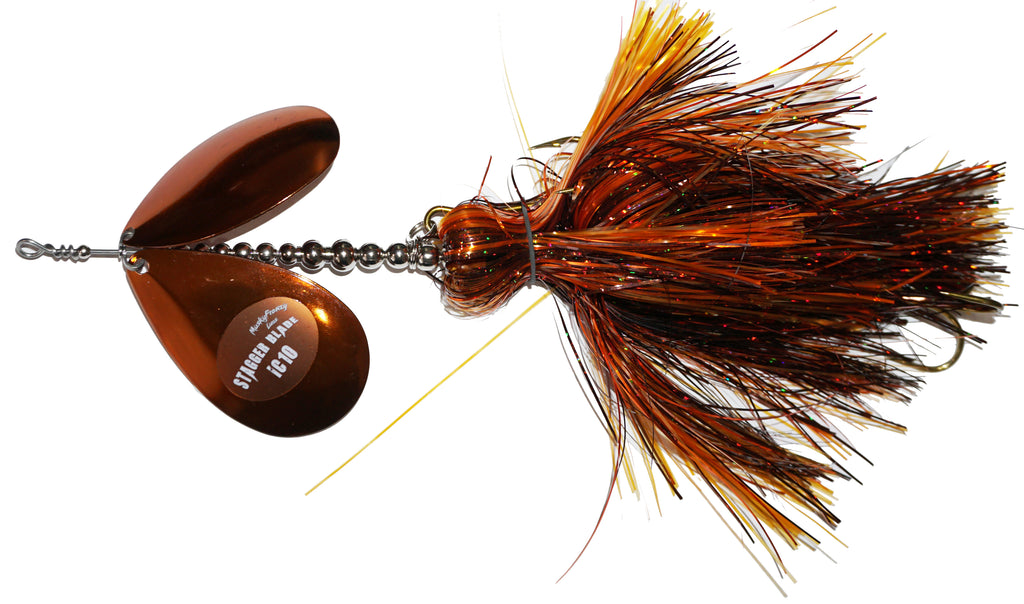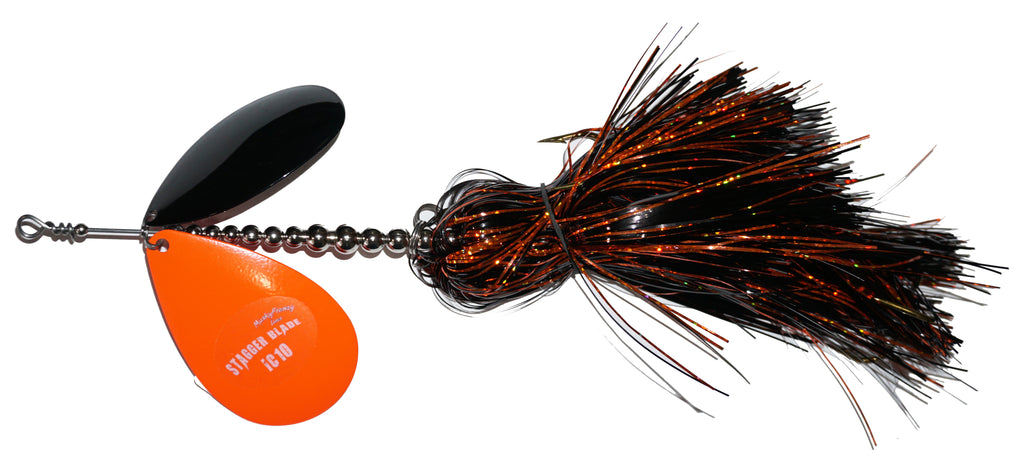 The IC10 has a #10 Colorado, #10 Indiana Blade with double skirts. Massive vibration and fish calling with this large frame bucktail. High quality, proven design and color combos for big fish success!