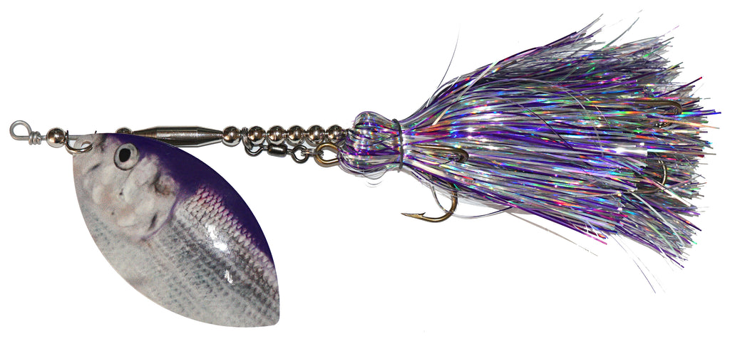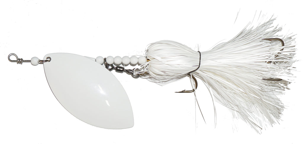 The Big Nasty Bucktails feature a newly designed configuration consisting of quality materials. Big Nasty Bucktails are approximately twelve inches long and weigh approximately 4 ounces. The extra large willow blade creates a soft thud in the water during the retrieve that the fish find irresistable! These bucktails cast like a dream and have a unique look because of the realistic print. Big Nasty's are perfect for any time of year to land a trophy fish!