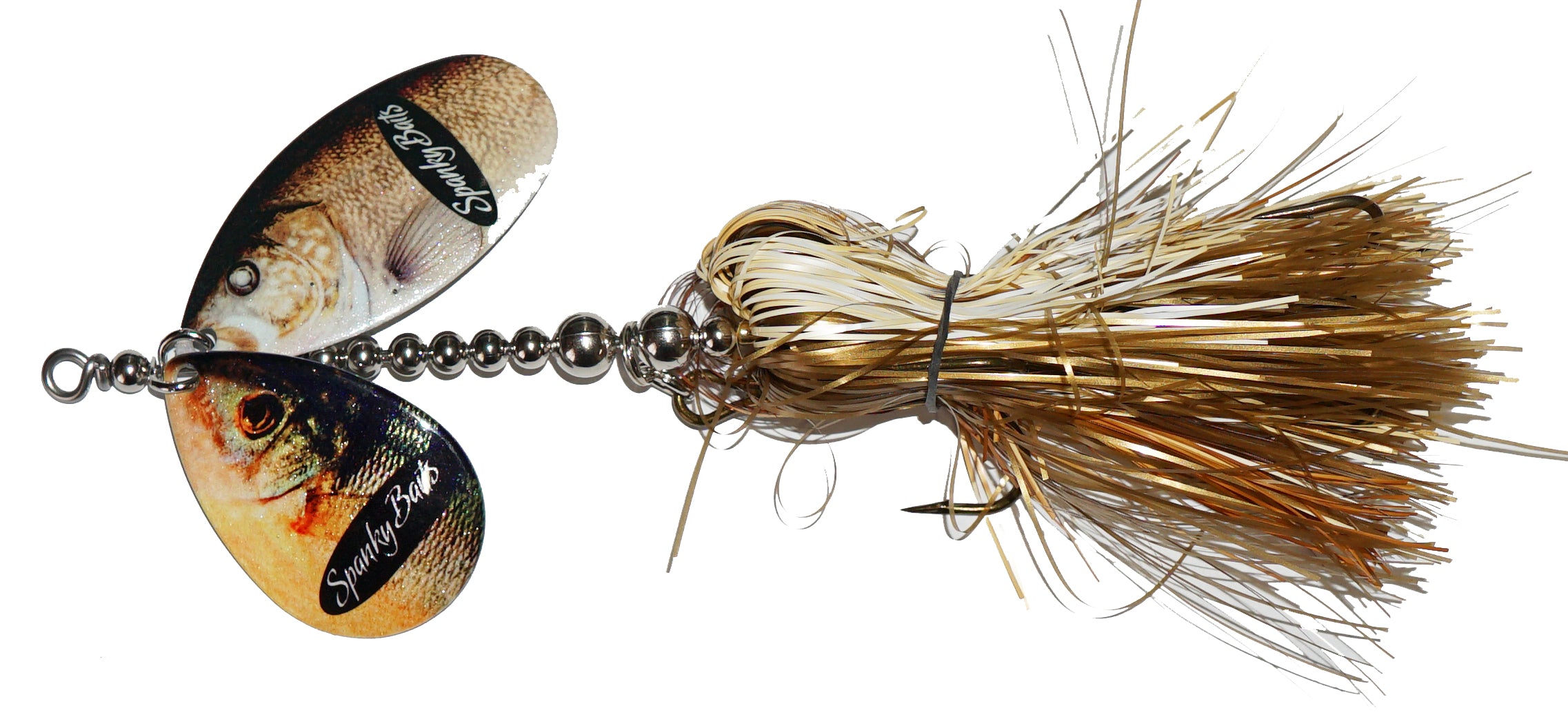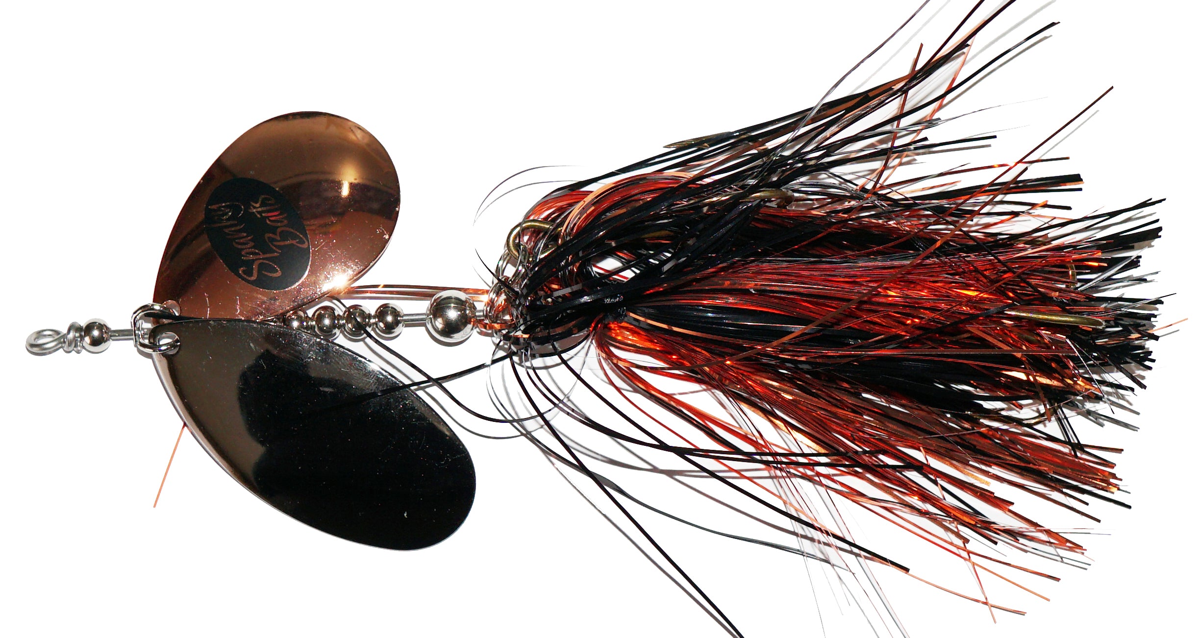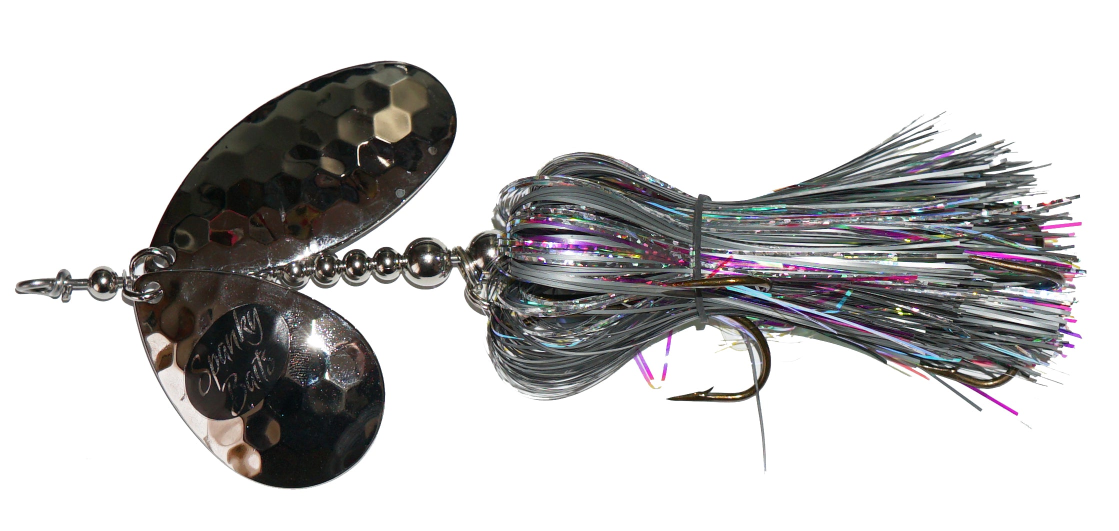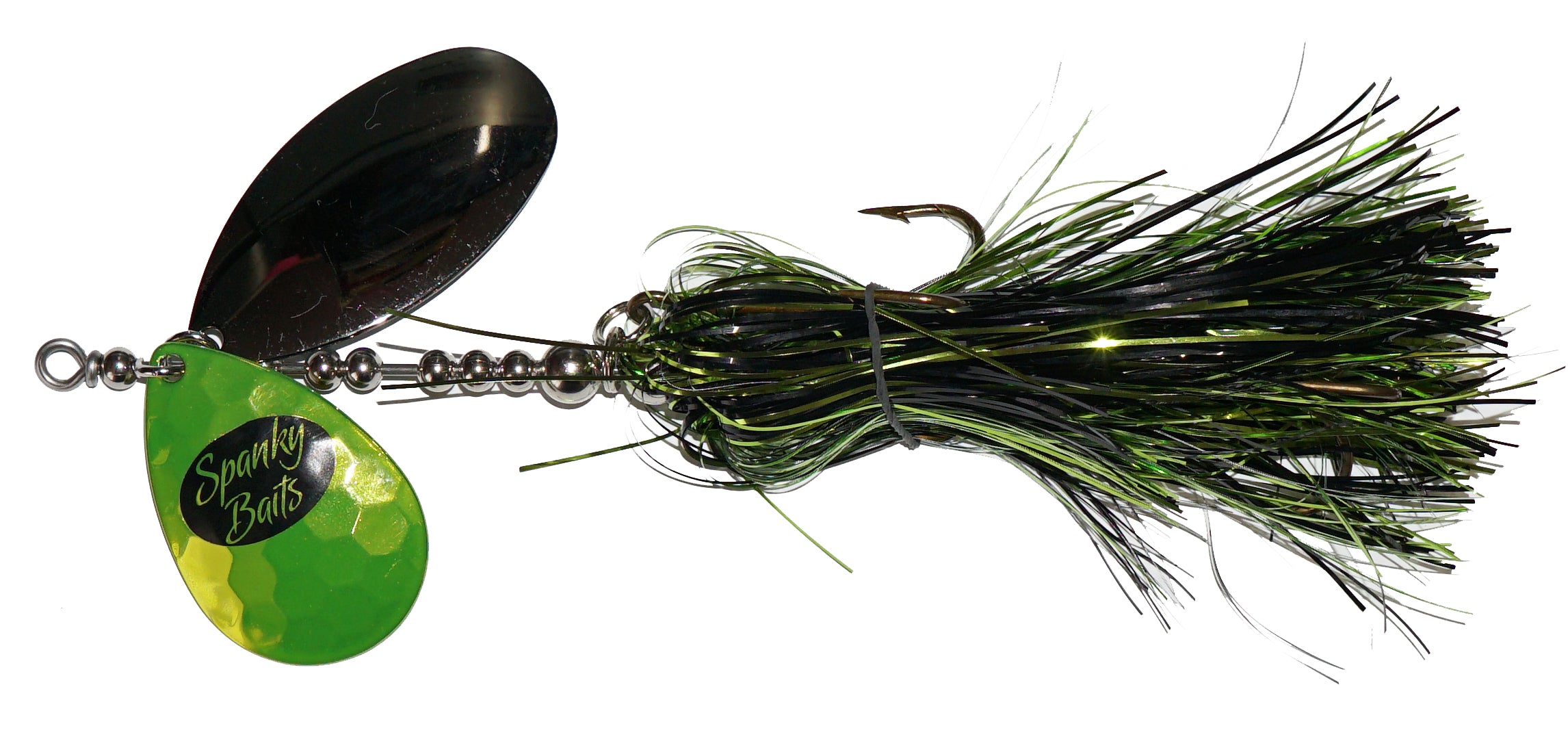 The Lil Angry: A 89 stagger with a 9 Indiana blade and 8 Magnum. These lures have a crazy action and attract fish in a big way. The Ultra-vibration of the magnum blades along with the visual addiction of the Flashabou makes this a lure that will go down in history. New and Hot!