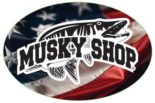 Musky Shop Oval Decal Red White Blue Waving Flag