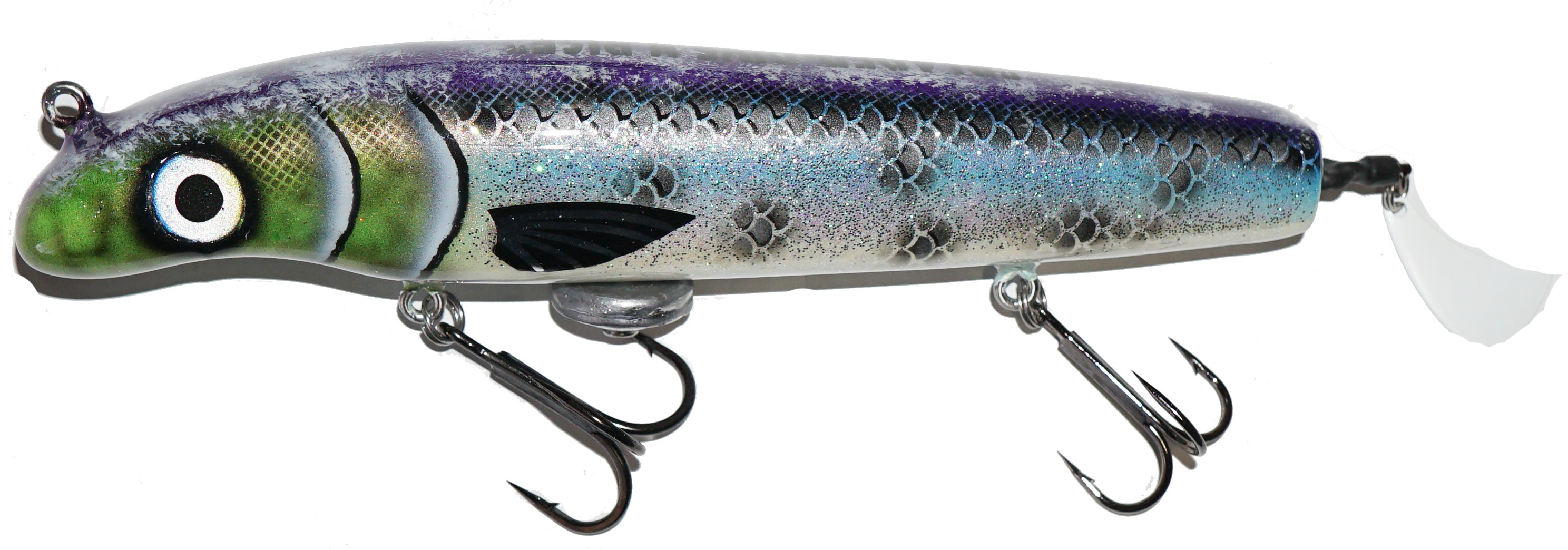 Each bait is hand made out of wood, hand painted, and hand assembled.