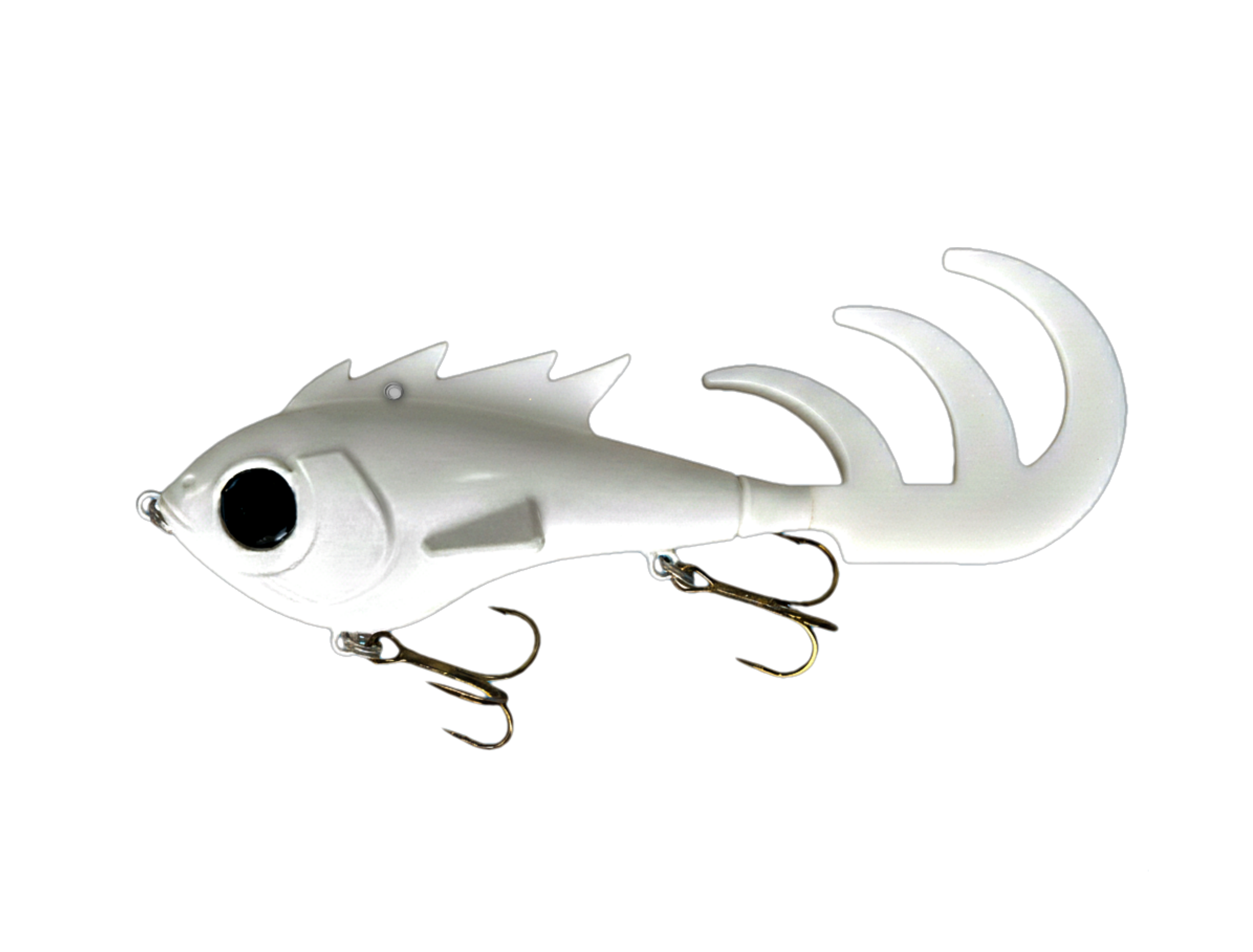 tail and radical soft-body design. This lure excels in pull-pause jerkbait presentations,