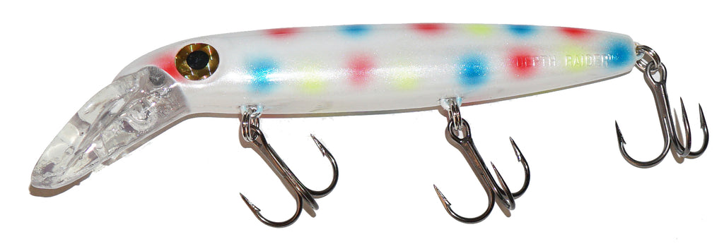 With a practical working depth of 6’-10’ this lure is a perfect choice for catching big fish off guard. The big lip gets it down deep and produces a wiggle that draws the attention of wary fish. Bang it off of structure or crank it in a straight retrieve the Baby DR is just the right size for muskies looking for a snack. Excellent for walleye and pike too!