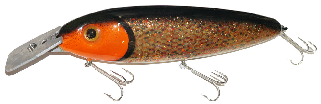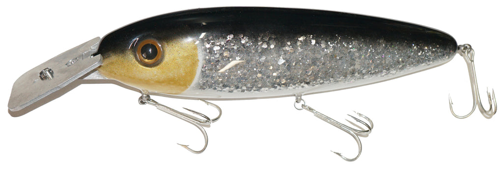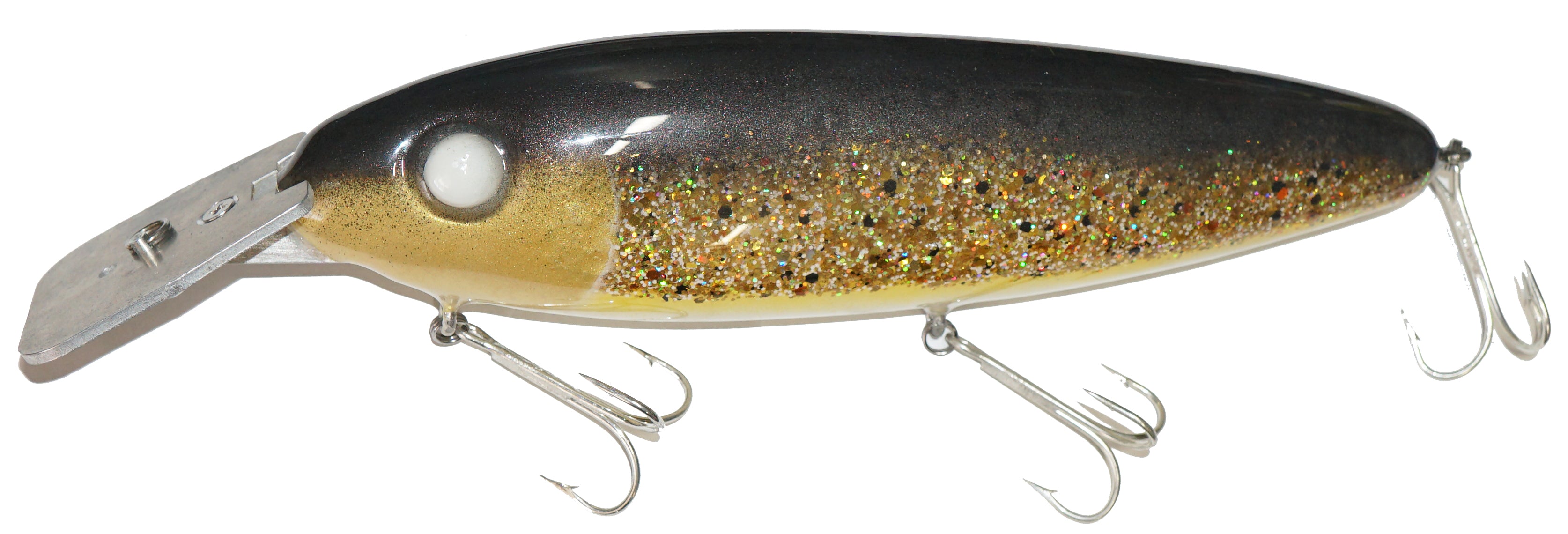 The LipLock is 15" overall with a 12" x 2" x 3" body and weights about 20oz.  An aluminum bar creates a spine that the lip and the hook hangers are mounted to.  A fish is not going to break this bait in half!  There are 2 line attachment points that allow for different depths and actions.  The action is nothing short of 'supernatural' with lots of bounce and wander.  There is one thing we can guarantee.....the fish have never seen anything like this before!