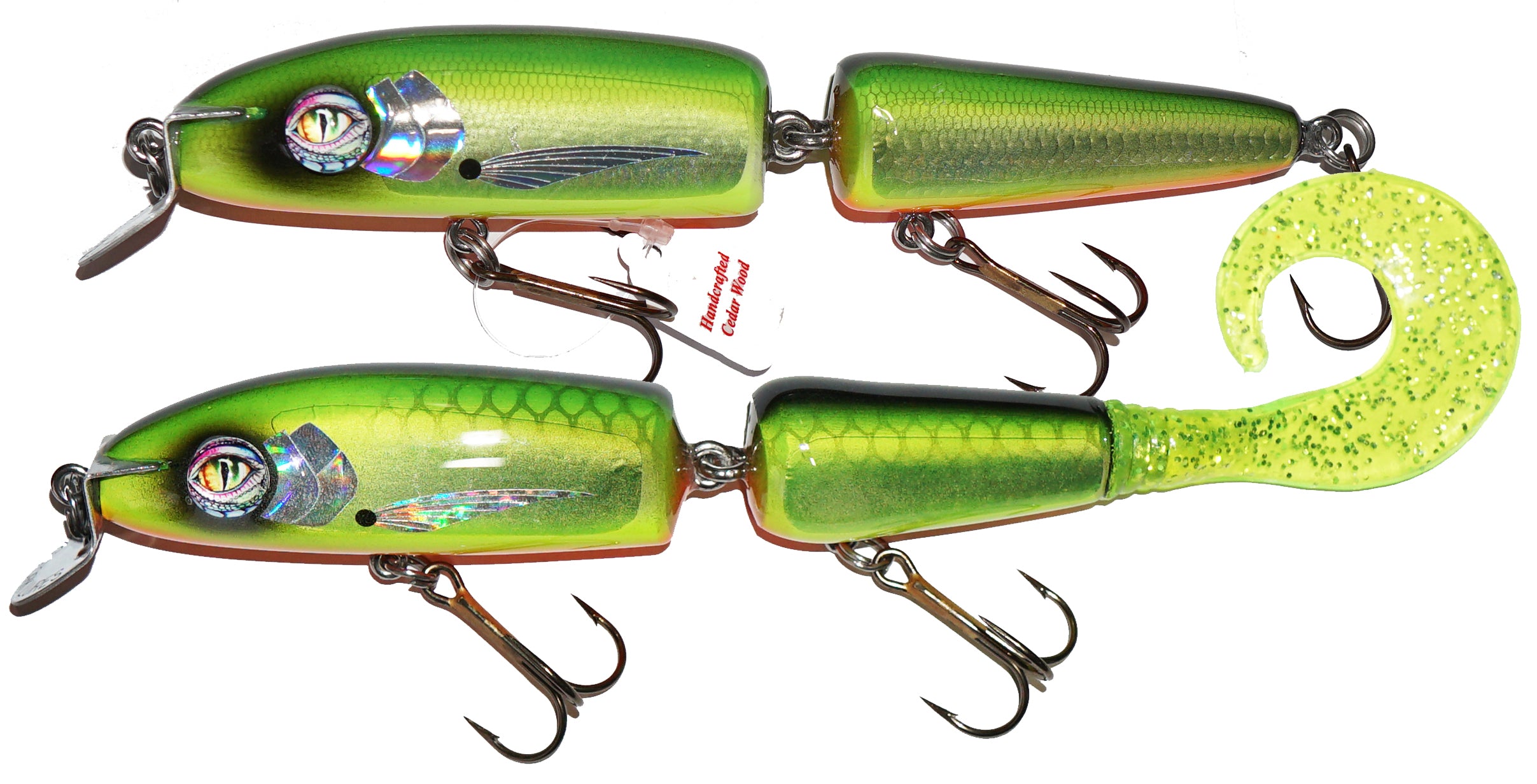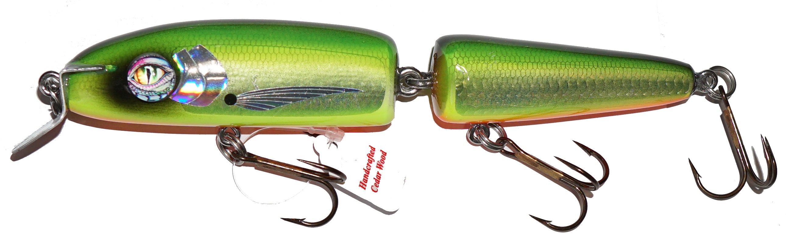 When fishing conditions call for a shallow running crankbait (2'-4') this gem has no equal. Jointed, high vibrating action gets the attention of predator fish looking for that easy meal. Always figure 8 this baby boatside for those big lazy followers. Amazing new color pattern!