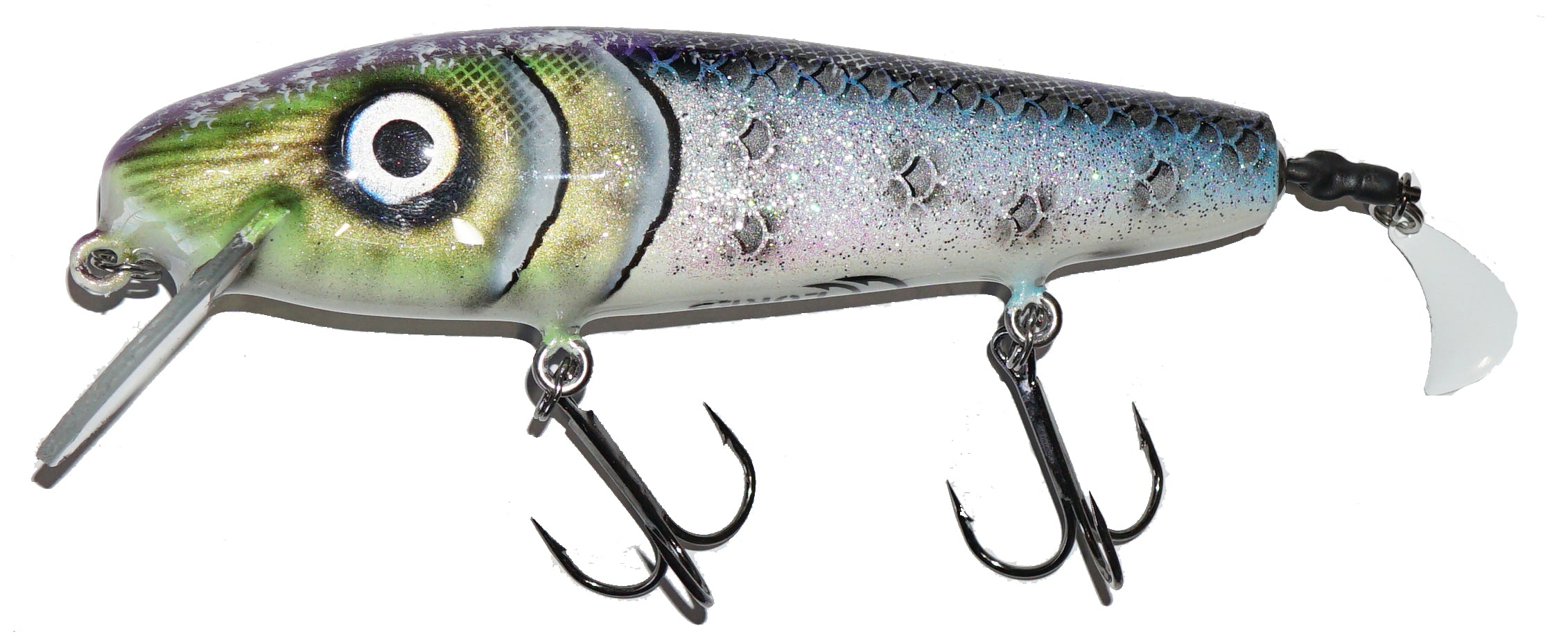 Each bait is hand made out of wood, hand painted, and hand assembled.