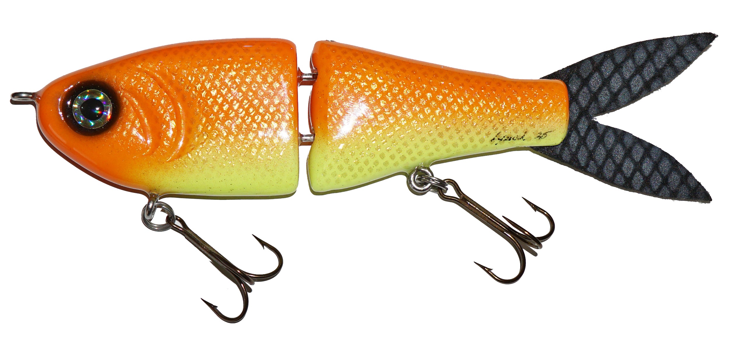 This new near neutrally bouyant swim bait from Lynch Um has stainless hardware and pins. Great swimming action whether using the rod or just your reel to retrieve.