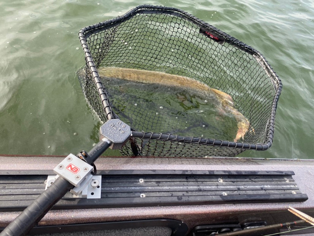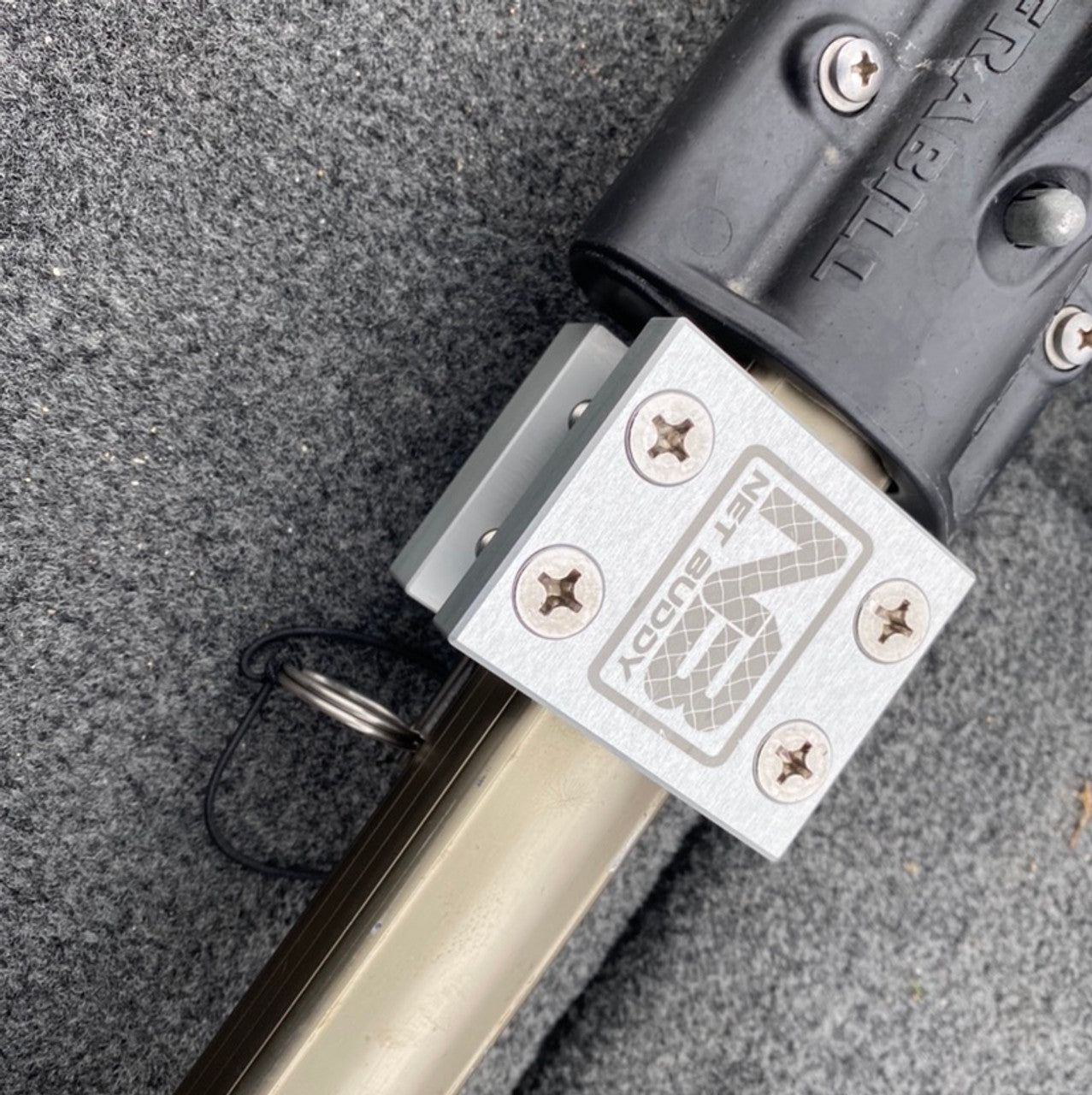 The Musky Buddy Track Mount helps assist in securing the net after a musky, or large fish is caught, keeping the fish secure in the water while you get your release tools, bump board and camera ready. Simply slide the net bracket into the musky buddy, and secure with included pin. The net is able to rotate from side to side for easy retrieval of the fish. Keeping the fish in the water as much as possible promotes a healthy and quicker release, without the worry of what is happening with the net.
