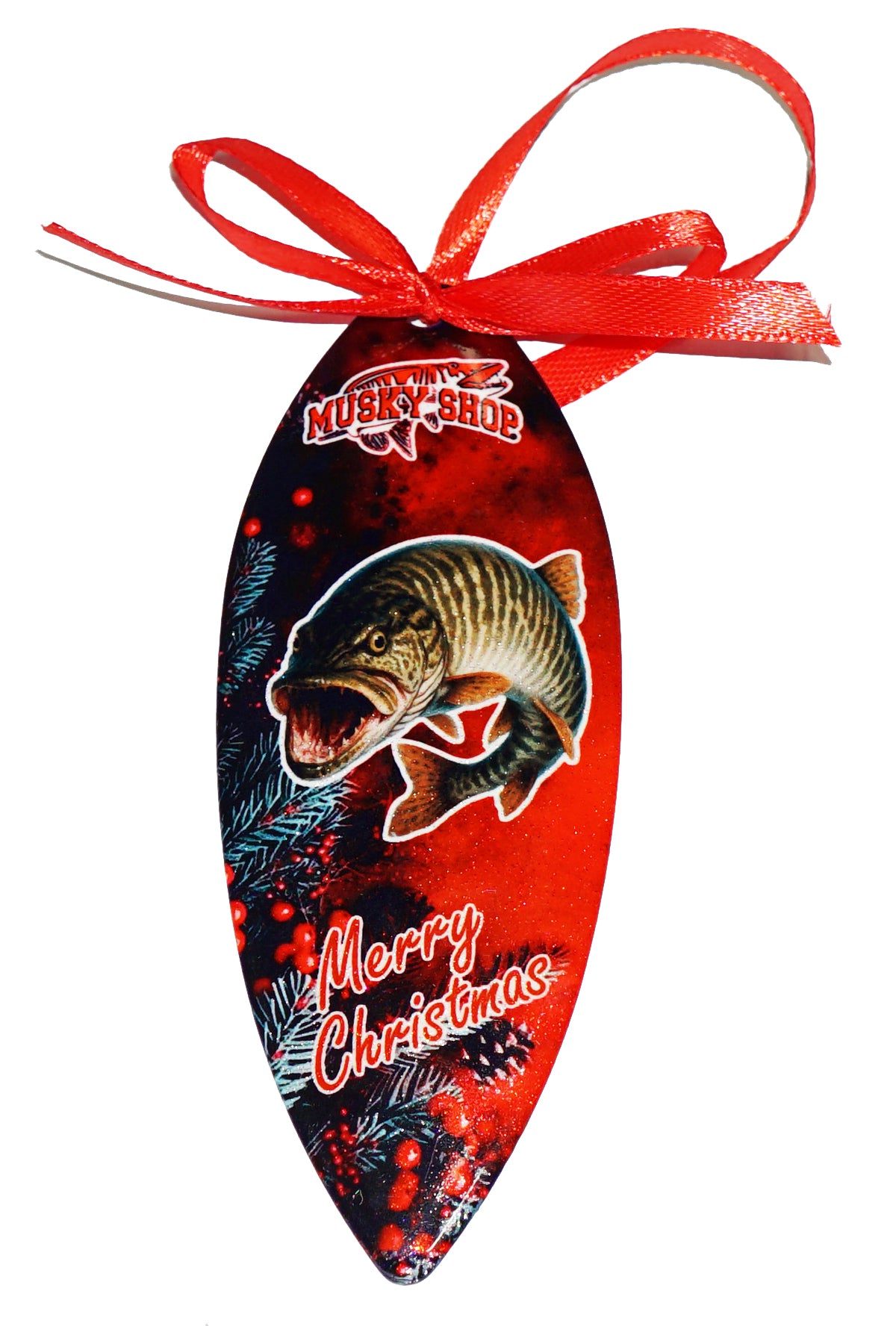Just in time for the holidays, This Christmas tree ornament makes a great gift this holiday season for the musky fisherman in your family. Built on a #10 willow Leaf Heavy Blade!