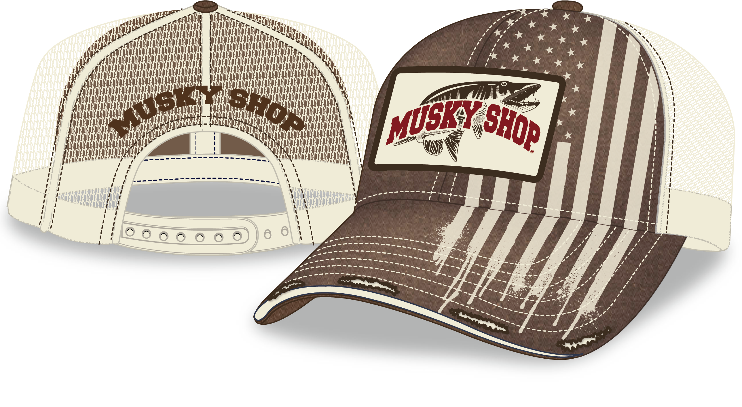 Musky Shop Low Profile Brown Cream Trucker Mesh Patch Cap