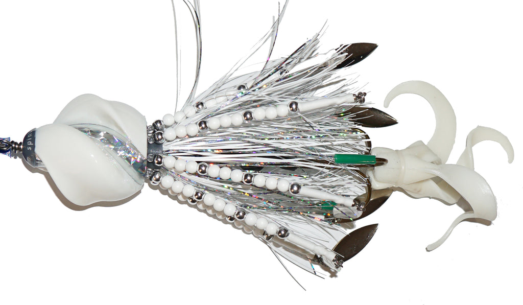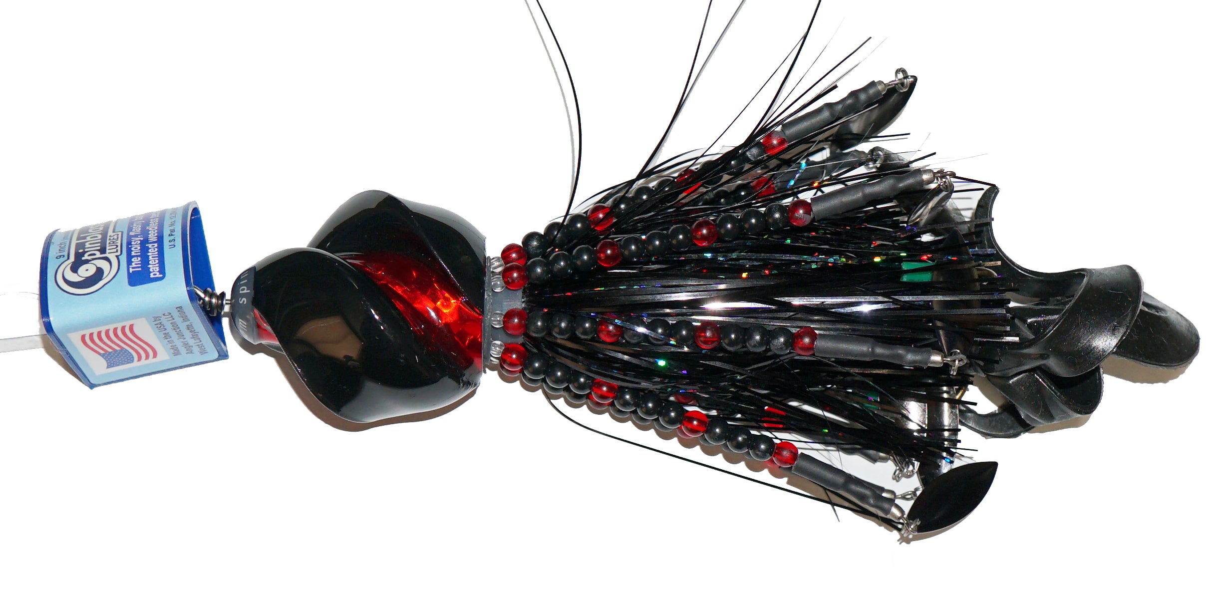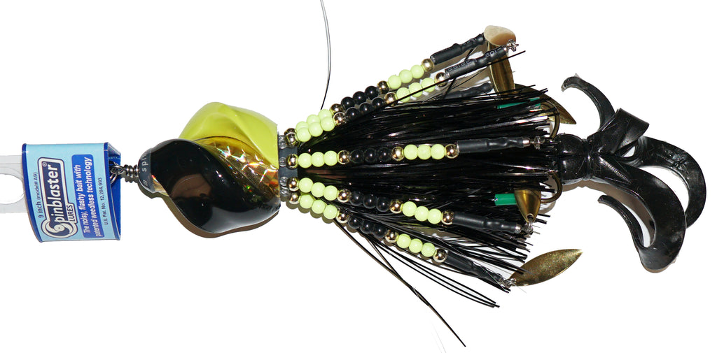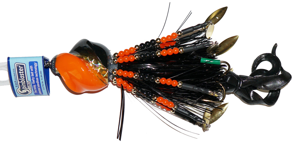 Spinblaster, a musky lure with a patented design that has the versatility to fish how and where you want. Great for casting or trolling, jerking or straight retrieval, the Spinblaster is designed to power through weed cover with far fewer snags. Nothing else looks like a Spinblaster in the water.