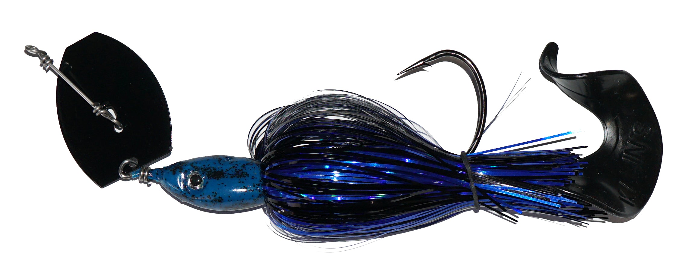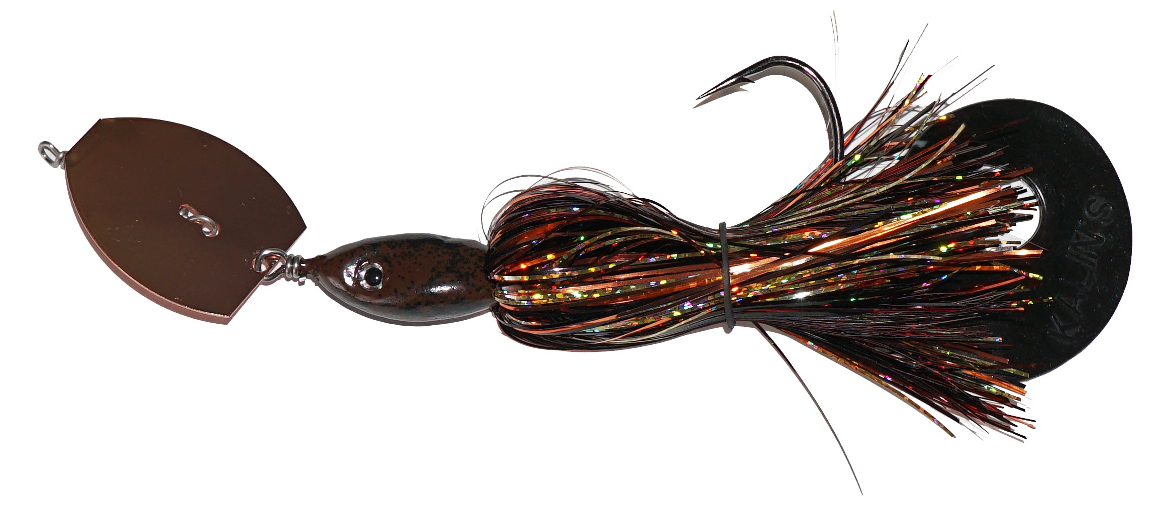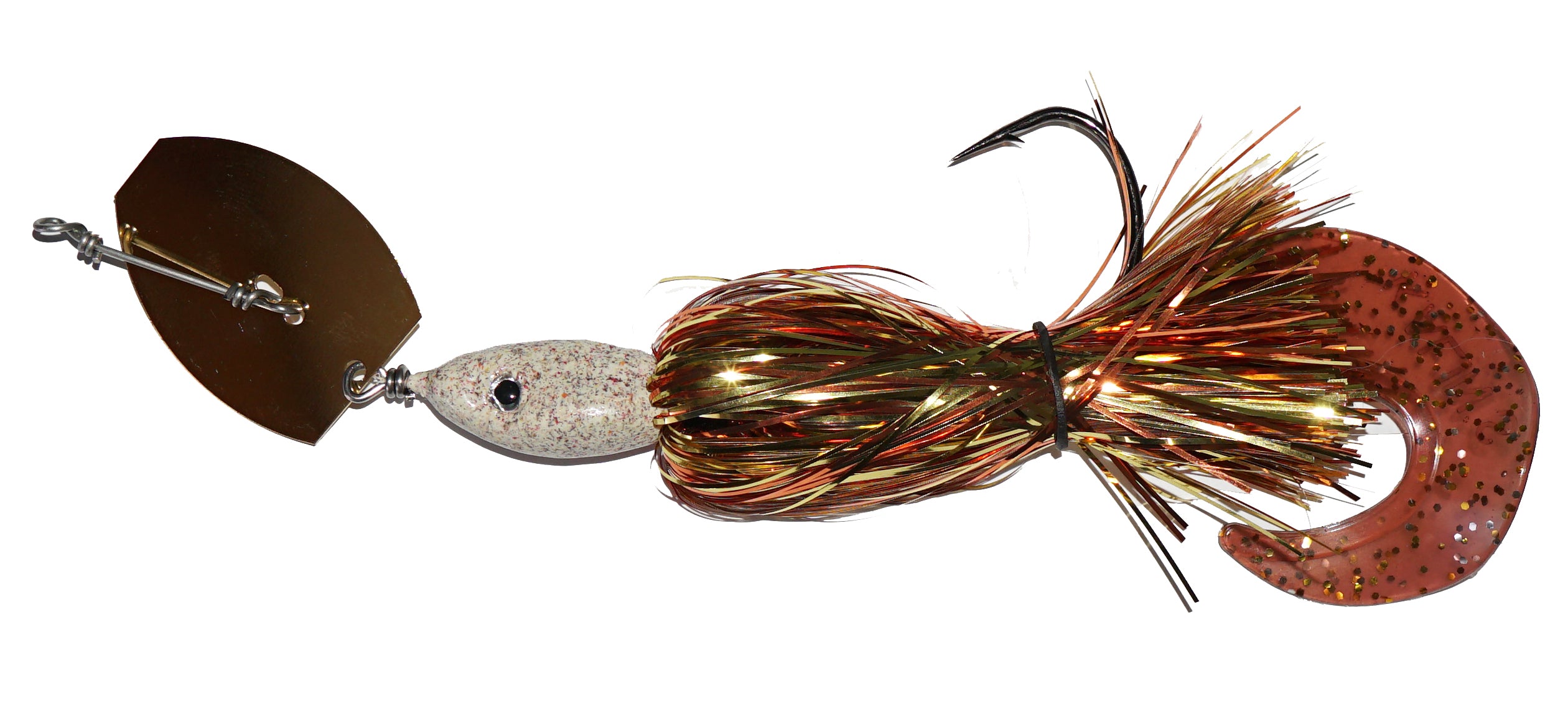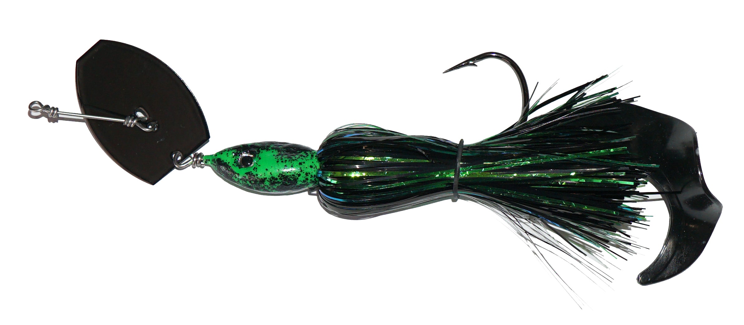 Chatter bait performance with very weedless qualities. One single hook, flashabou skirt and a soft tail.