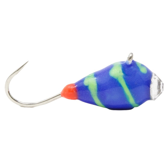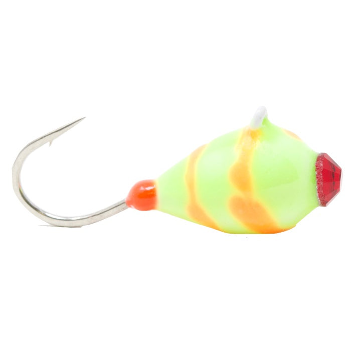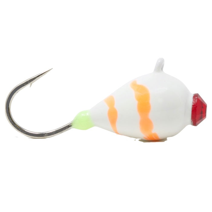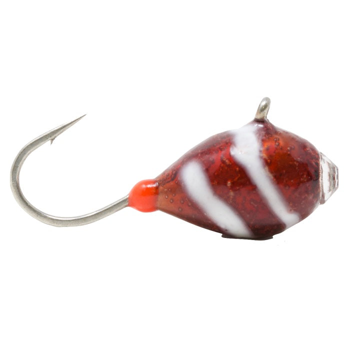 Named for its appearance, the Swirl Drop offers another cutting edge design to the lineup of deadly tungsten jigs by Clam Pro Tackle. The “swirl” pattern imitates color patterns common in insects. And it has all the quality features anglers expect from Clam Pro Tackle; an acrylic epoxy coating for durability, a trailing glow bead that offers an innovative glow pattern, and the Swarovski gem in the nose provide light reflection. All are designed to attract fish and elicit more strikes.